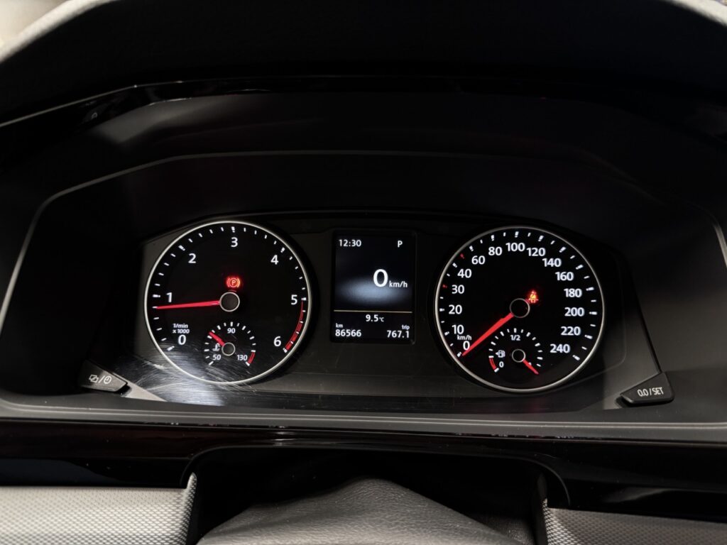 PU5A Instrument cluster (km/h); display of speed, total/trip mileage, rpm, fuel gage and time