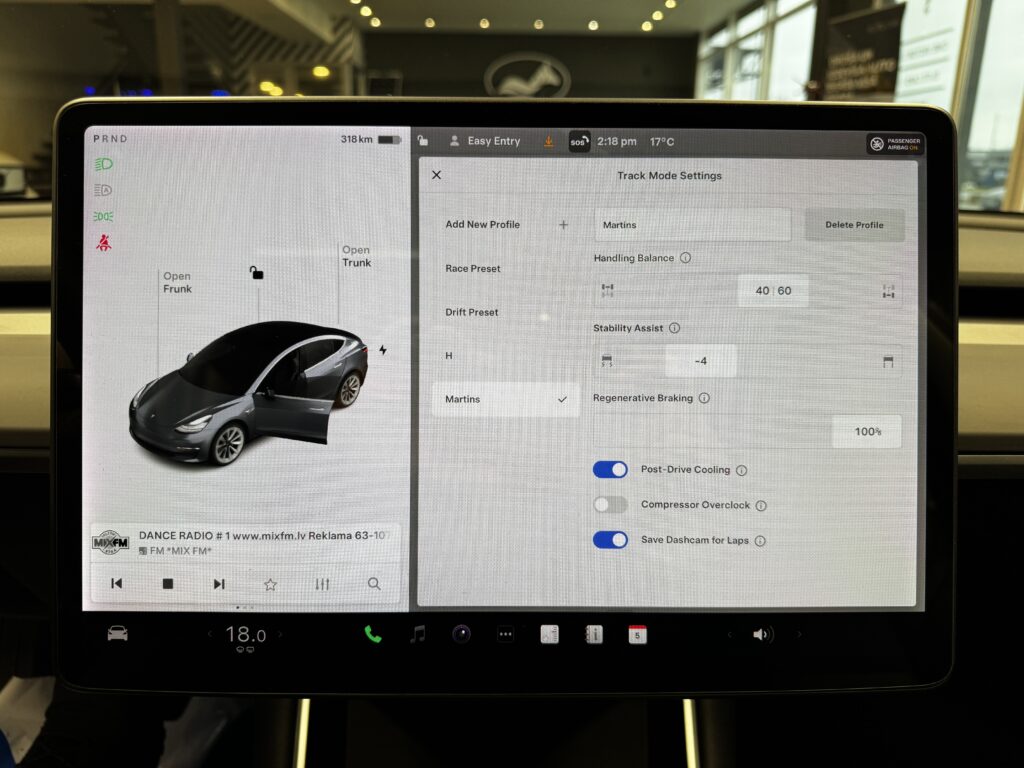 – Track mode, Drift mode ar iespēju mainīt jaudas sadali starp asīm.