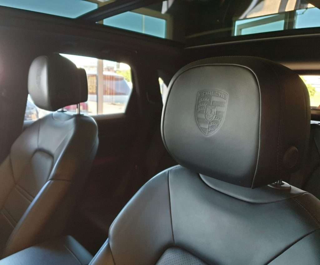 Porsche ģērbonis priekšējos galvas balstos,