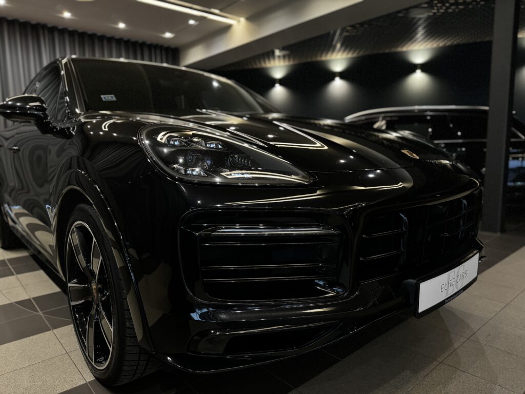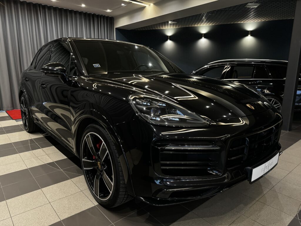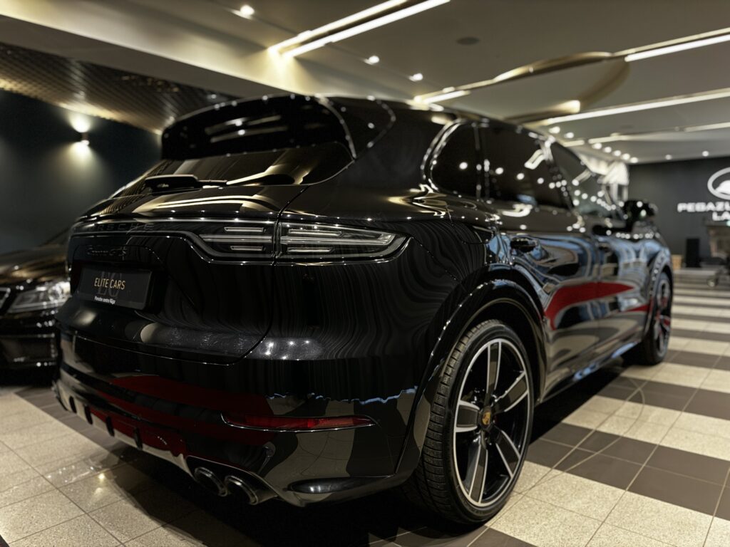 22 collu Cayenne Sport Classic diski melnā metāliskā krāsā ar arku paplatinājumiem virsbūves krāsā
