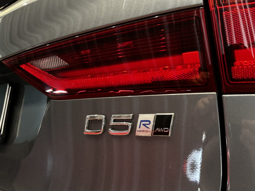 – R-Design emblēma transportlīdzekļa aizmugurē